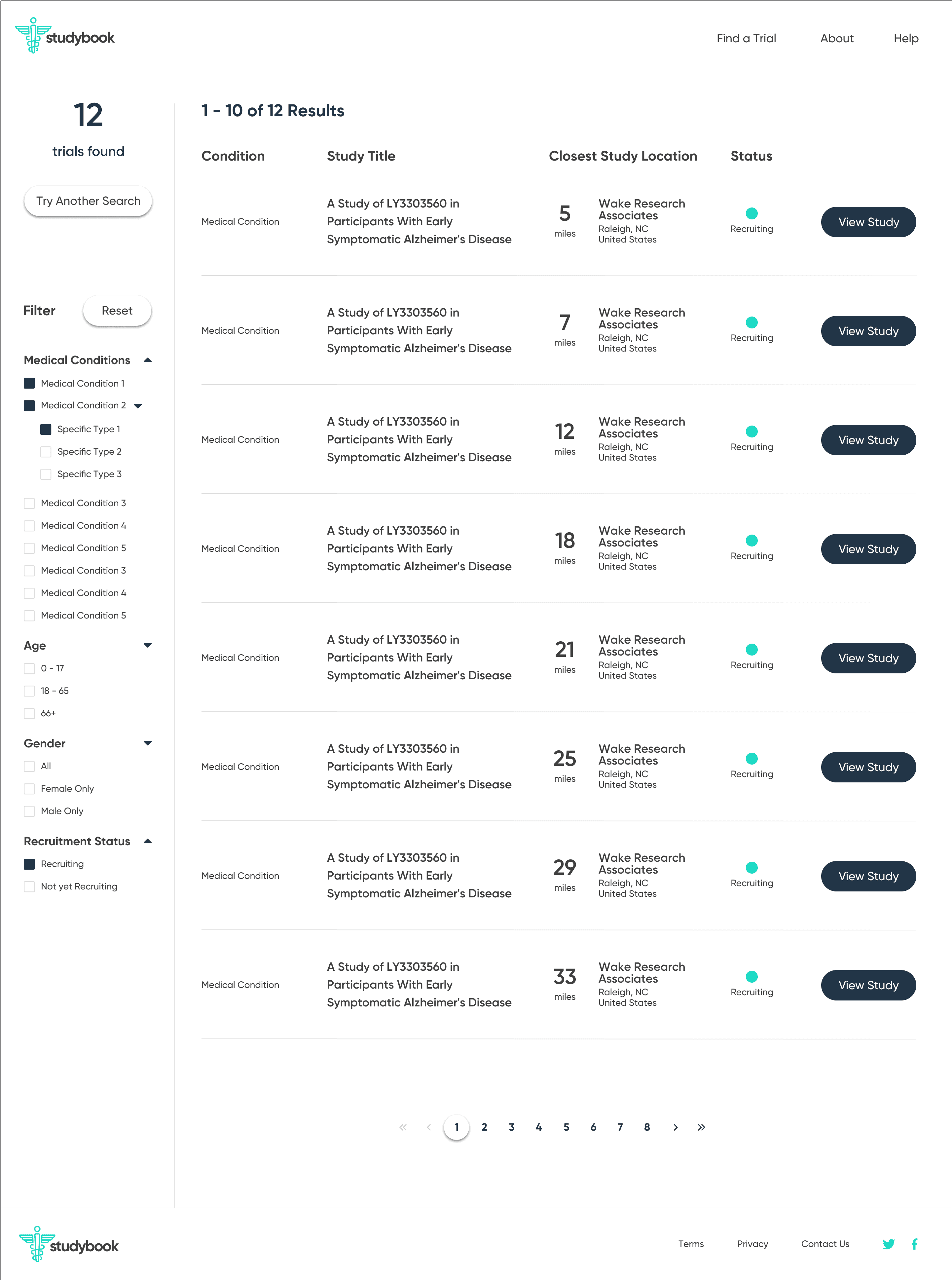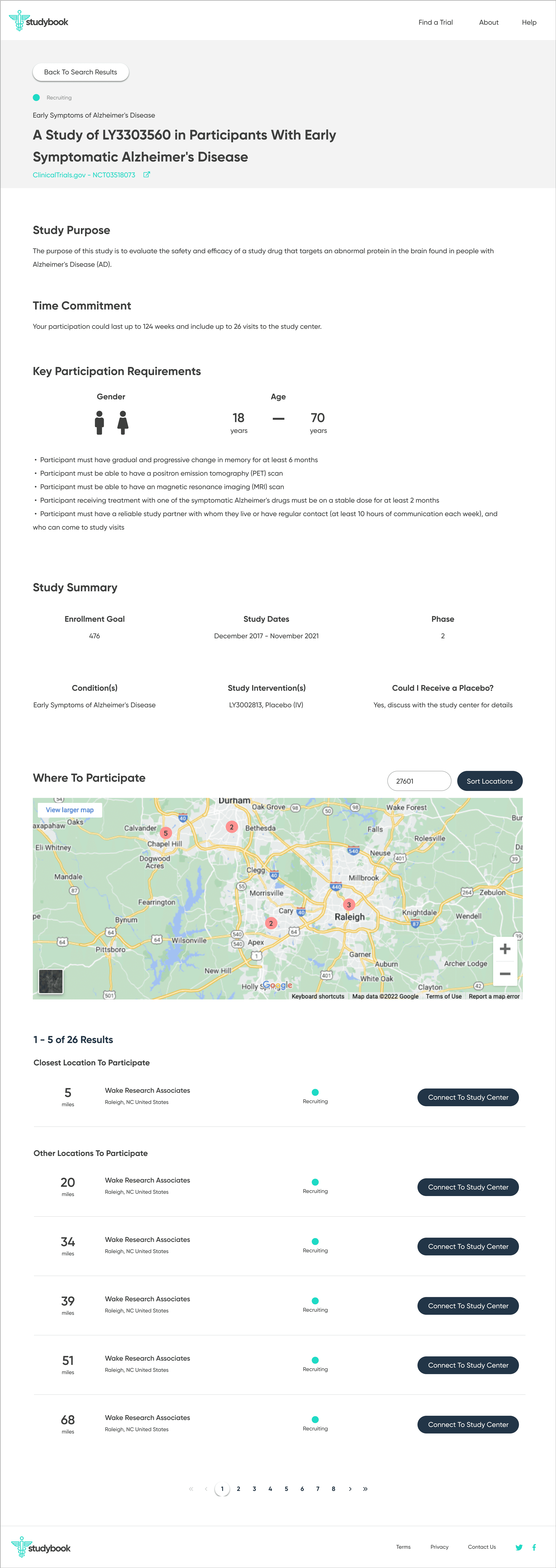 Search results and study detail pages are overloaded with data. It’s hard to tell what matters, where to start, or what to do next, especially for older or less tech-savvy users.