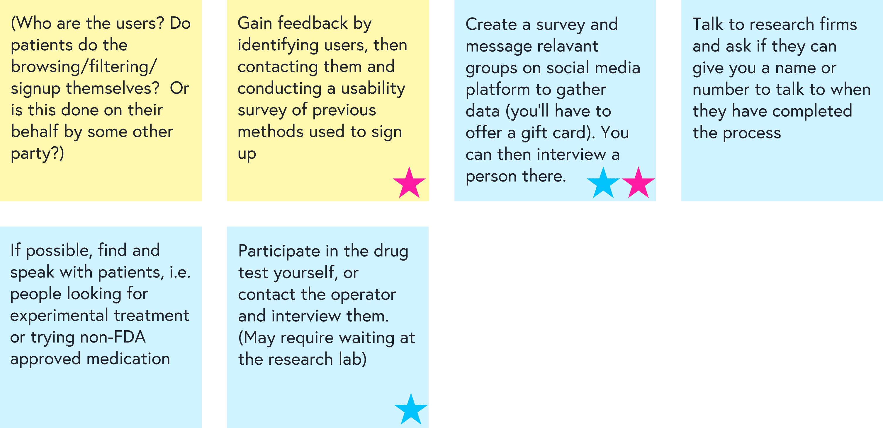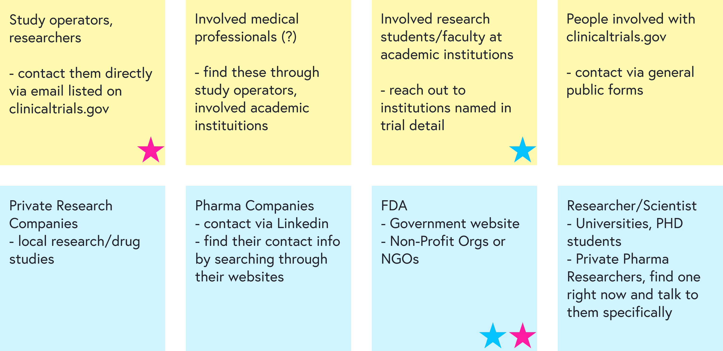 We then brainstormed how to reach each group for feedback and prioritized the most feasible paths.