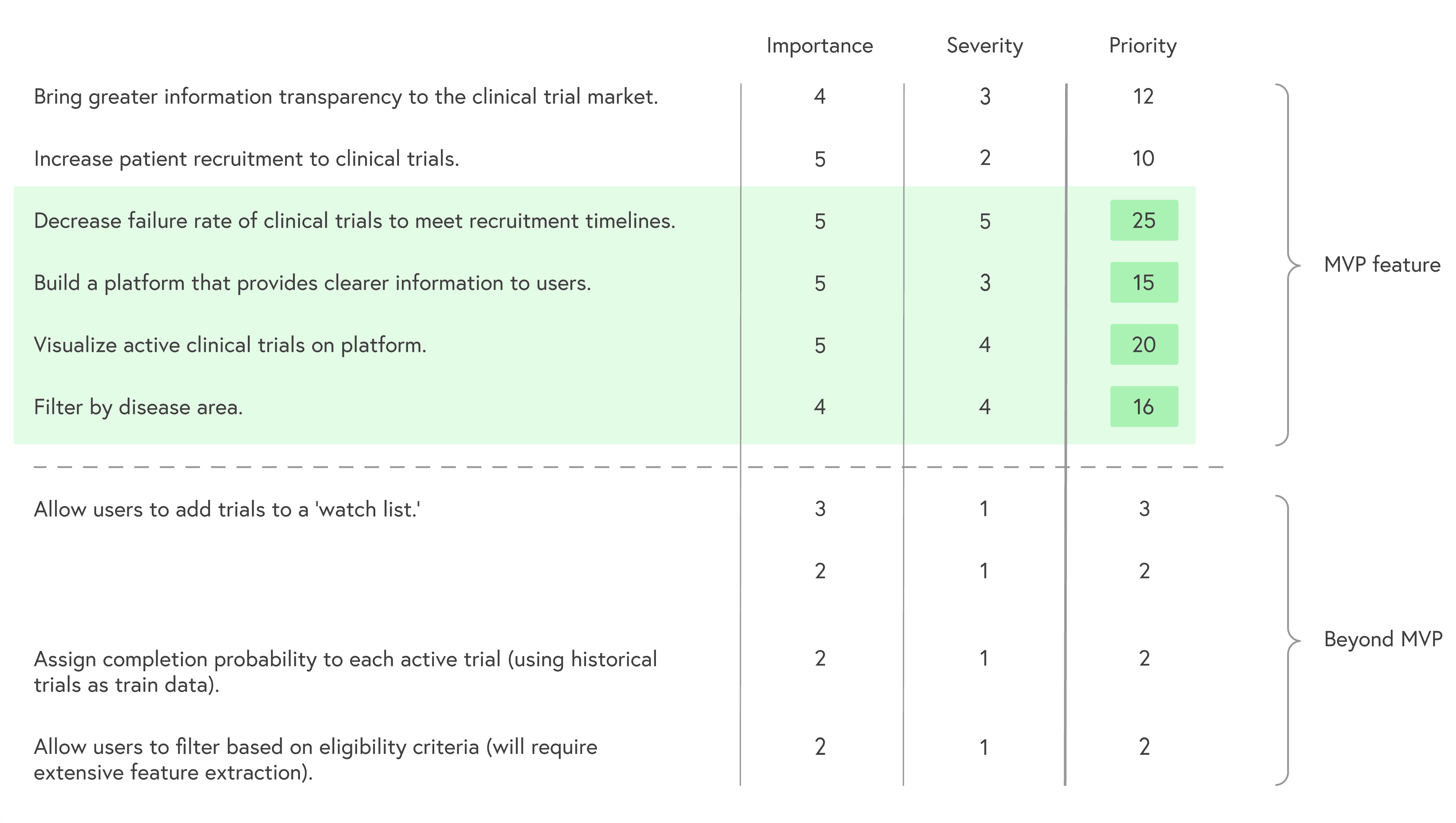 I prioritized goals by combining importance and severity of each problem to keep scope realistic while still impactful.
