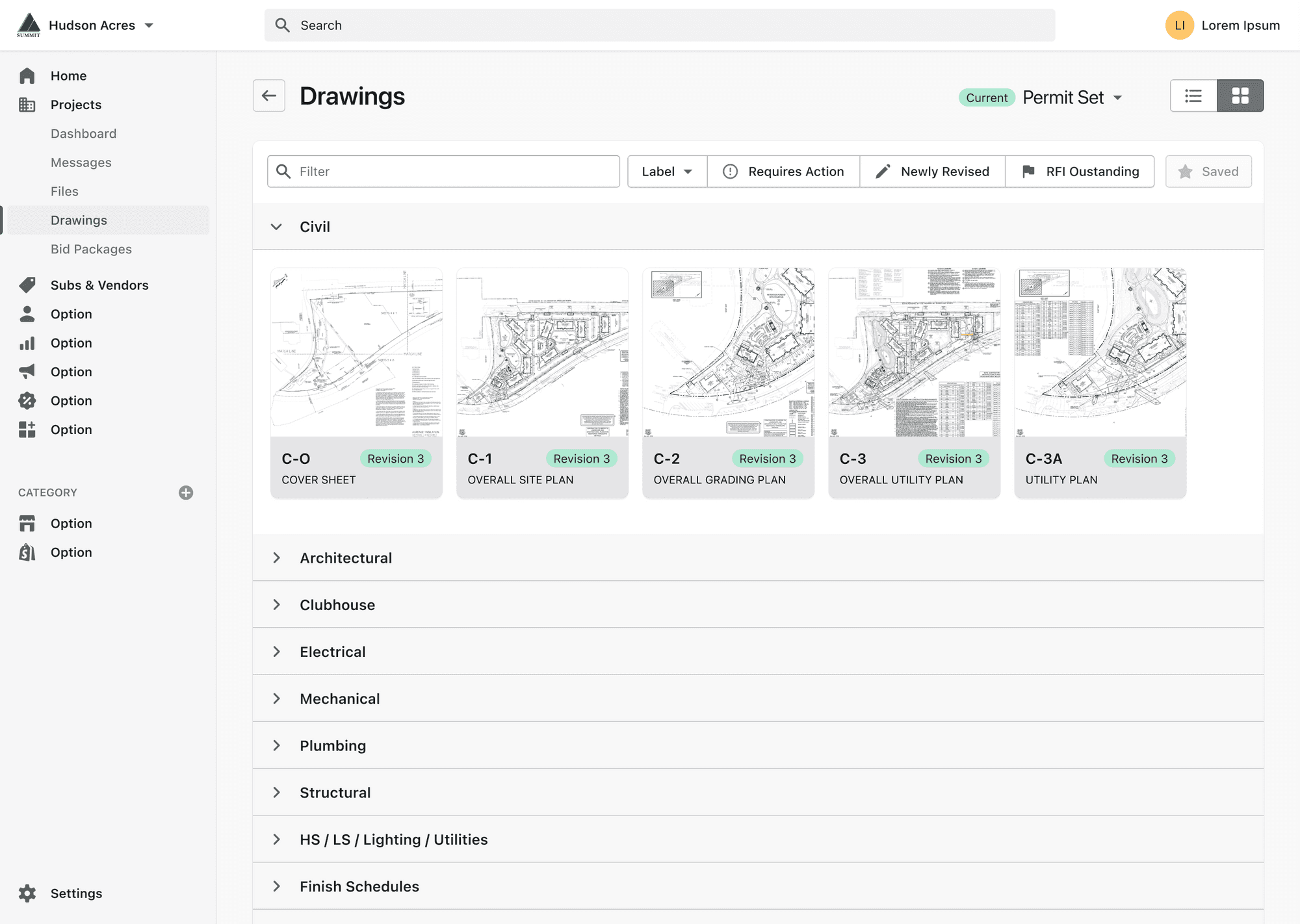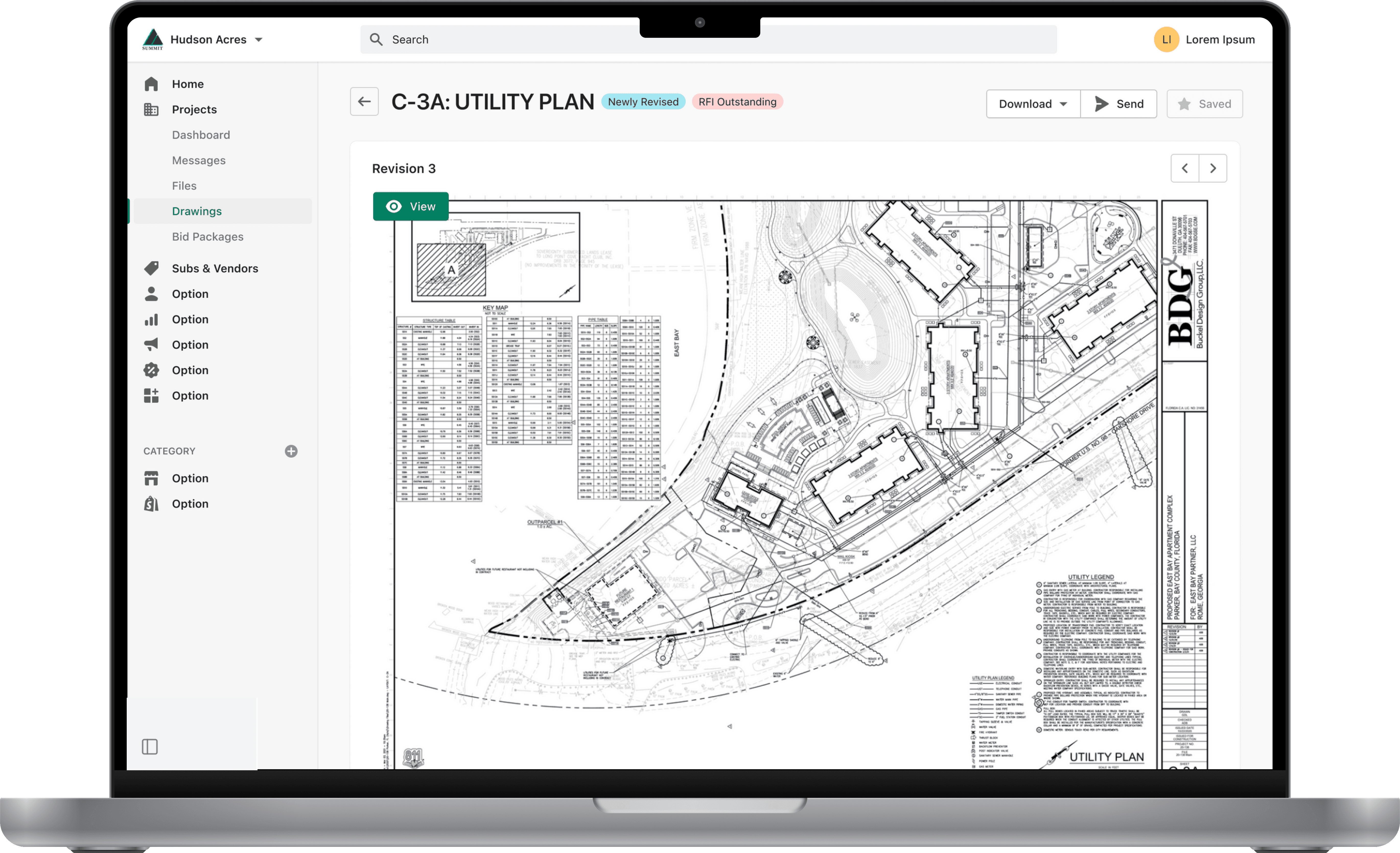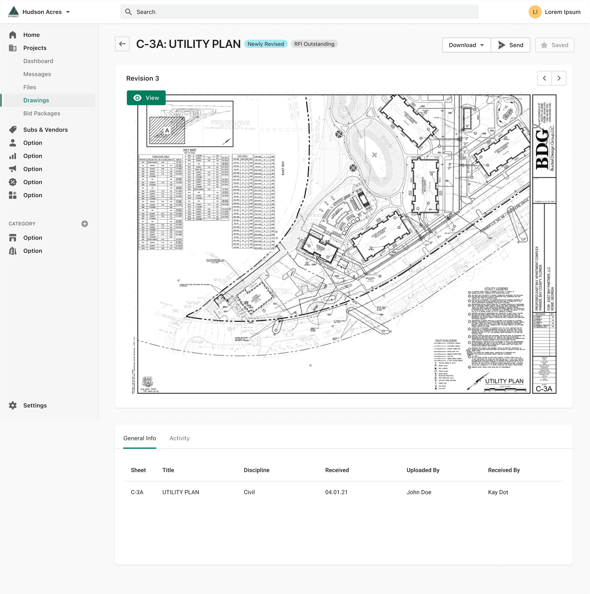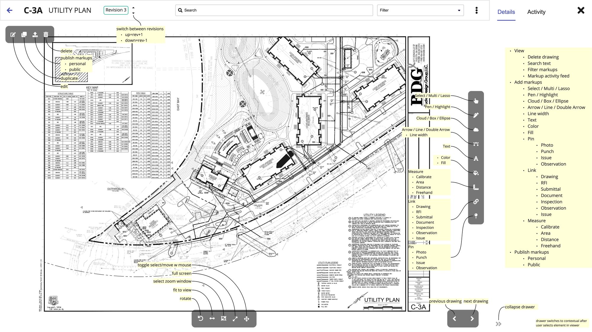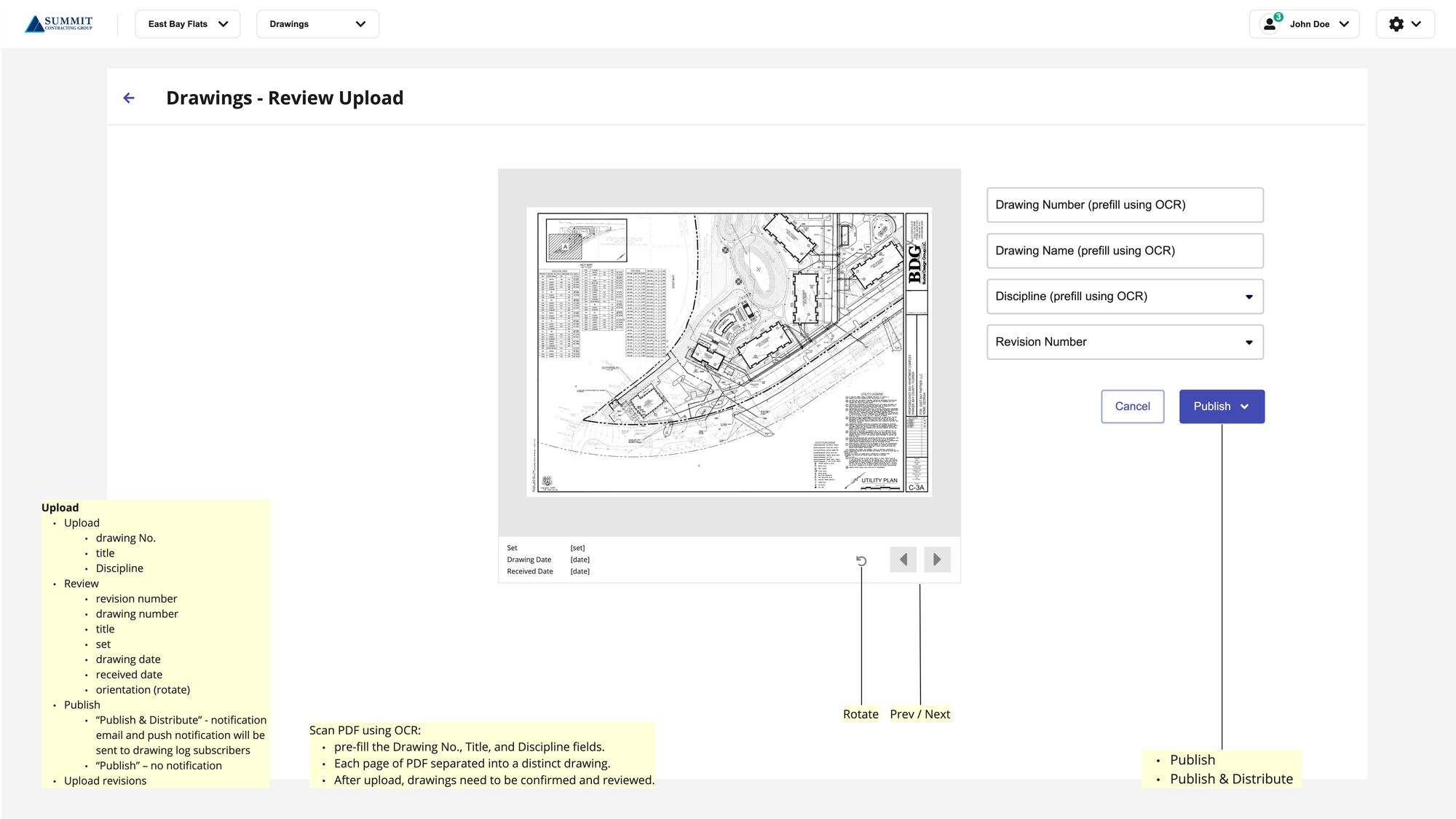 Upload, view, and version control of construction documents.