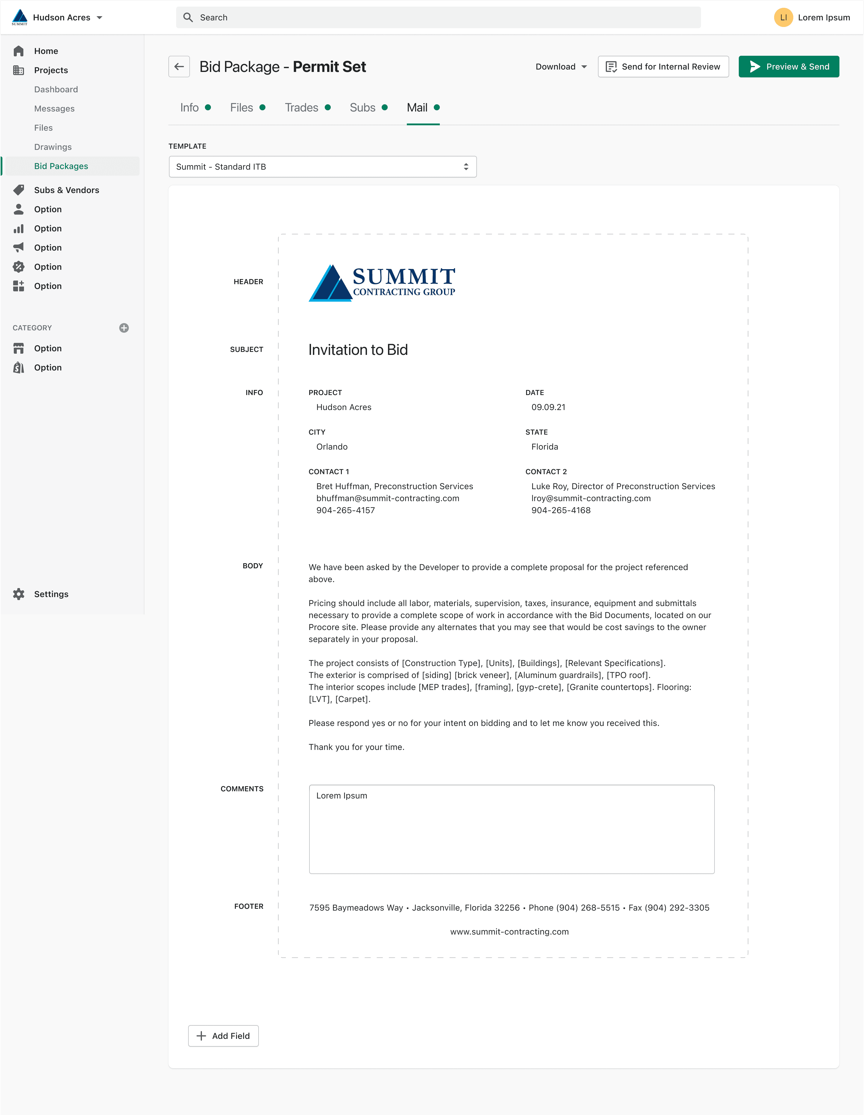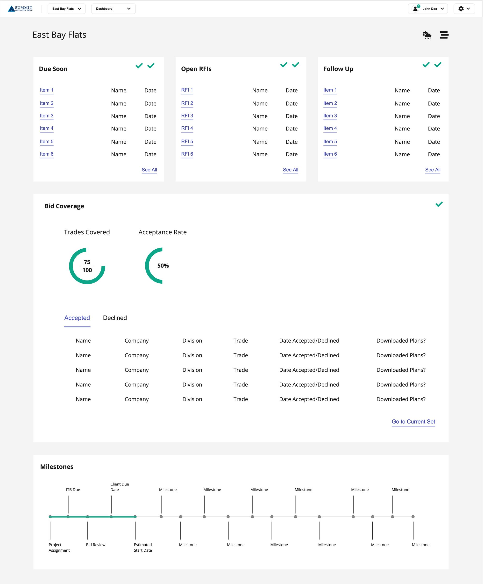 Summit Contracting Group is the largest multifamily general contractor in the U.S., yet much of its work still relied on paper processes and outdated systems. I led research and design for a unified management platform, focusing on Preconstruction—the department responsible for subcontractor bidding and early project setup.