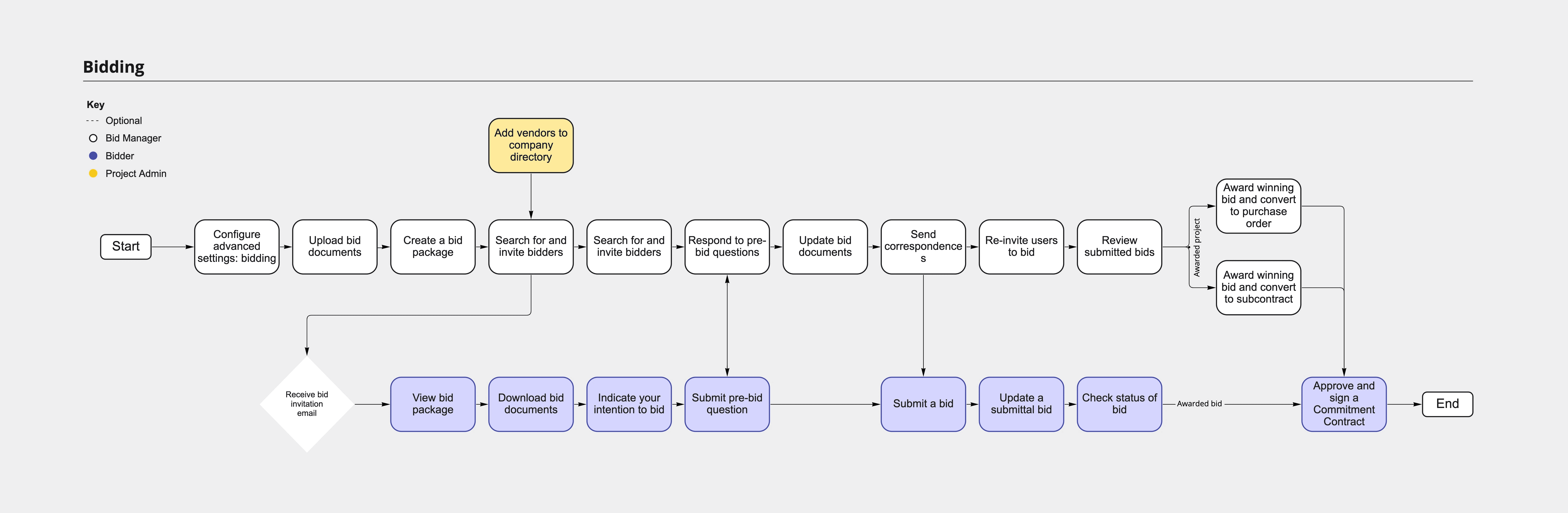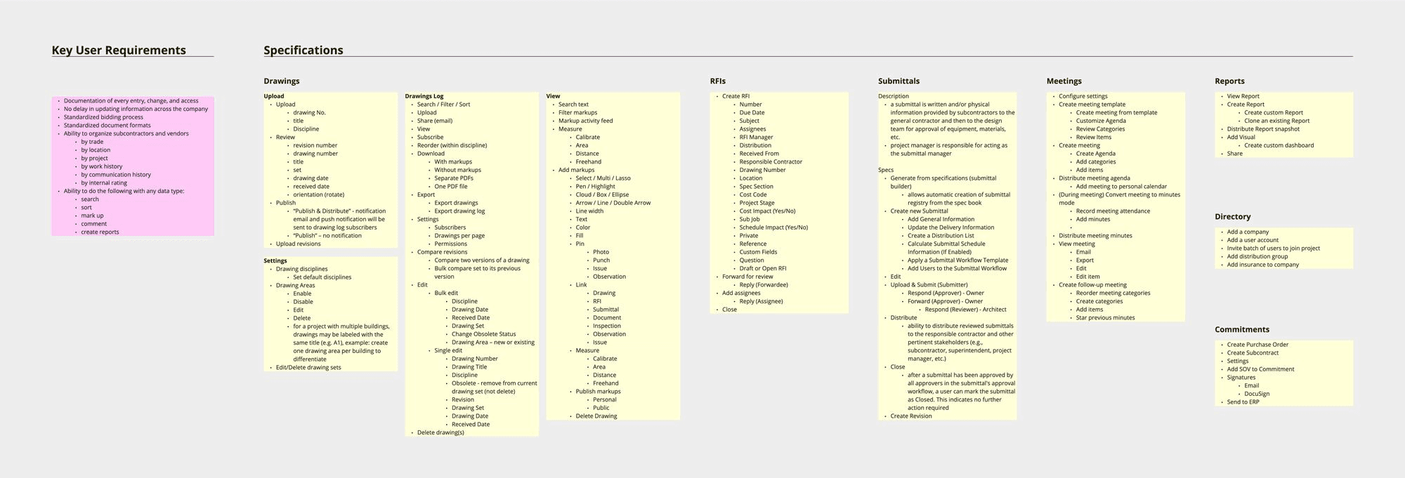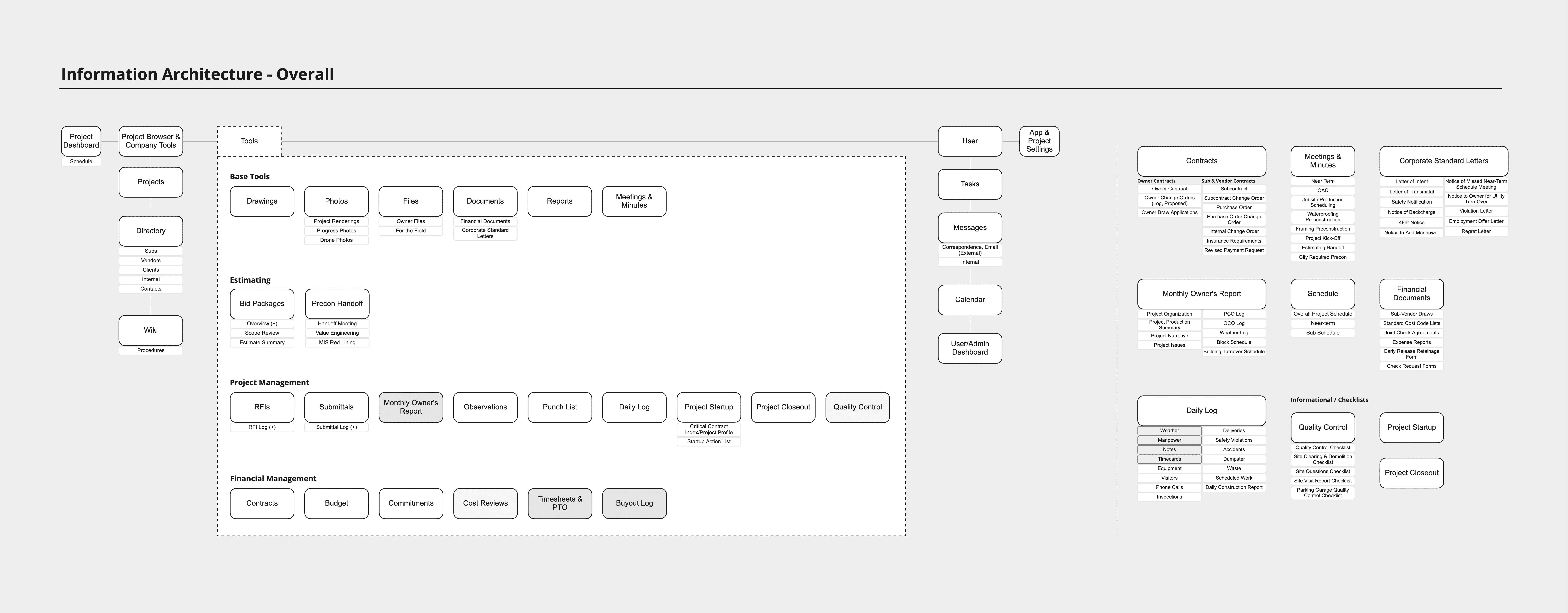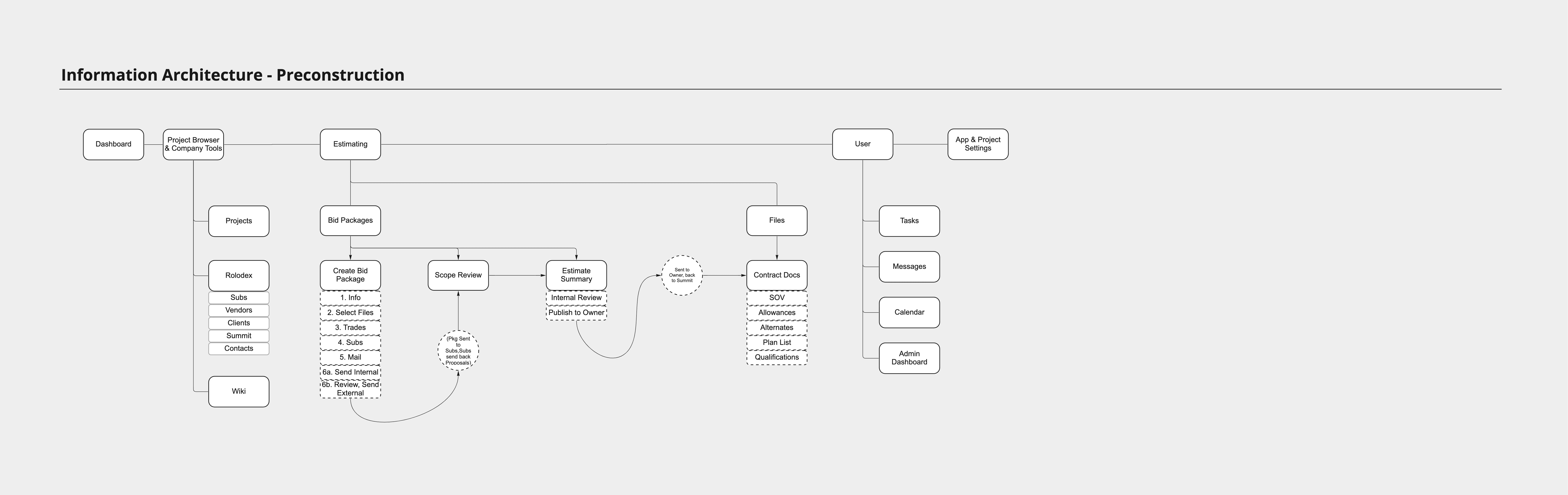 The next step involved determining what each user did during the processes shown above. This was completed for every type of major task in the company, but we'll be focusing on the areas within Preconstruction: construction drawings and the bidding process.