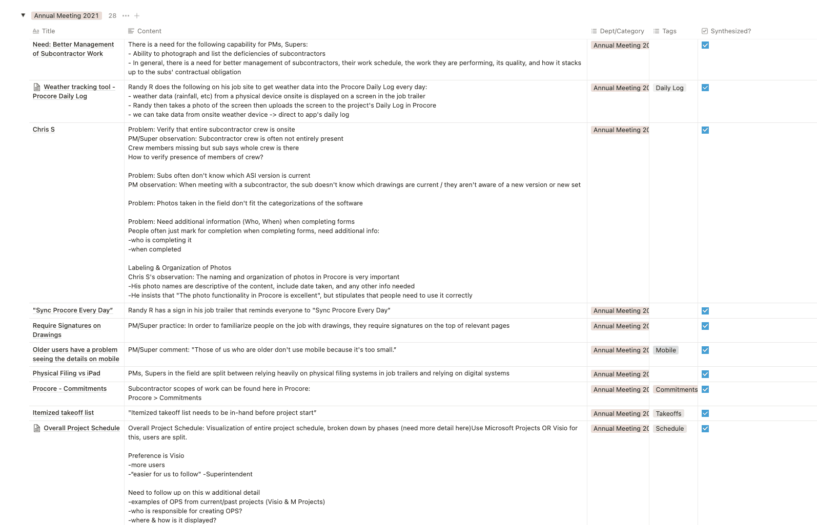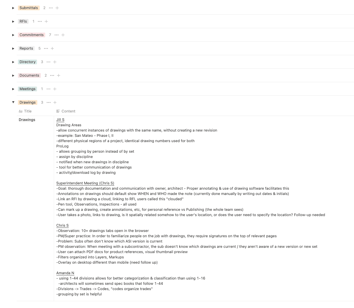 Interviews with Preconstruction, Project Management, and Administration teams.